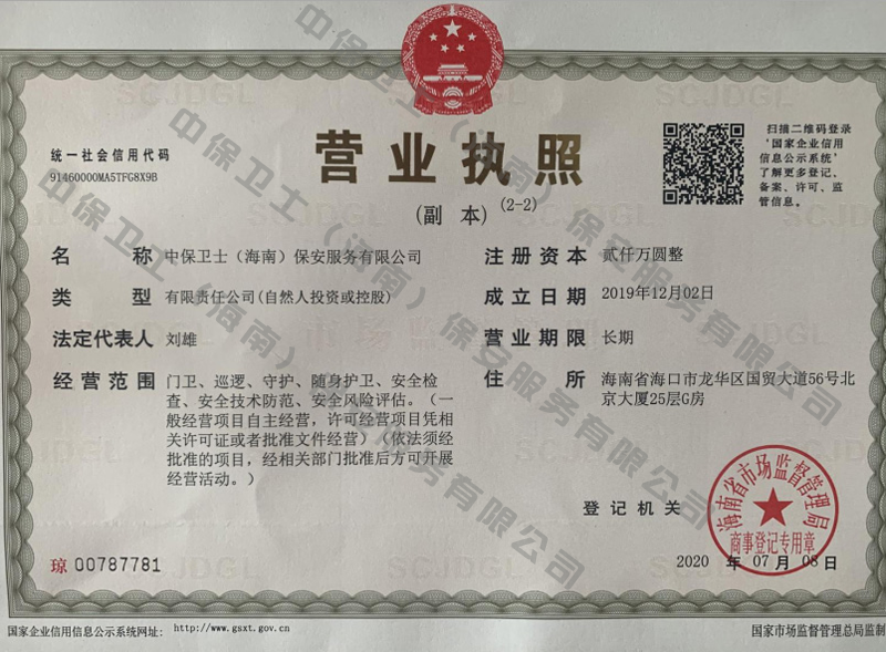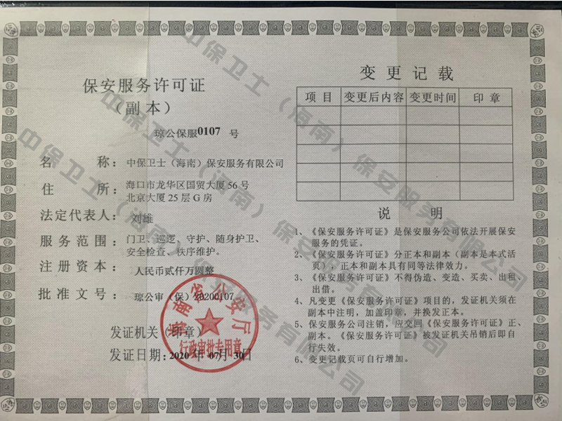 新利体育-新利体育(中国)是经海南省公安厅批准,依法持有《保安服务许可证》,提供保安服务、门卫、巡逻、守护、区域秩序维护、随身护卫、安全检查的专业化保安服务公司。
